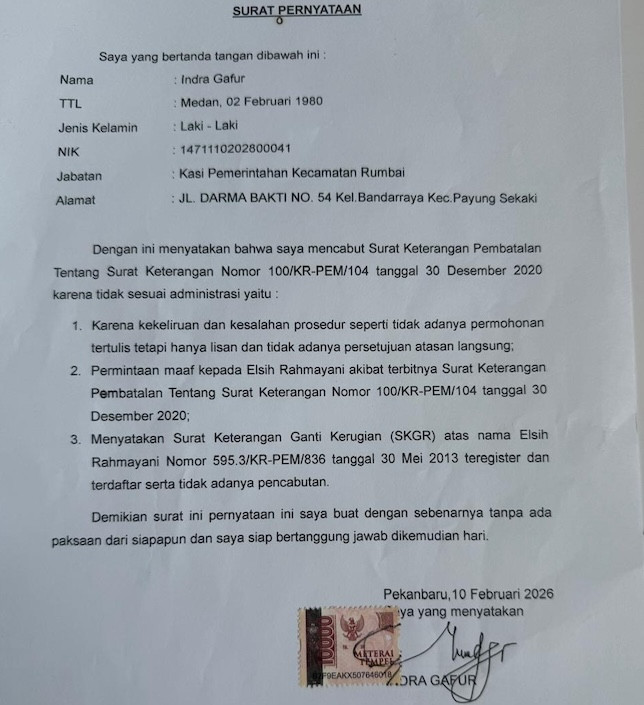 Plt Lurah Lembah Damai Cabut Surat Pembatalan SKGR, Akui Salah Prosedur