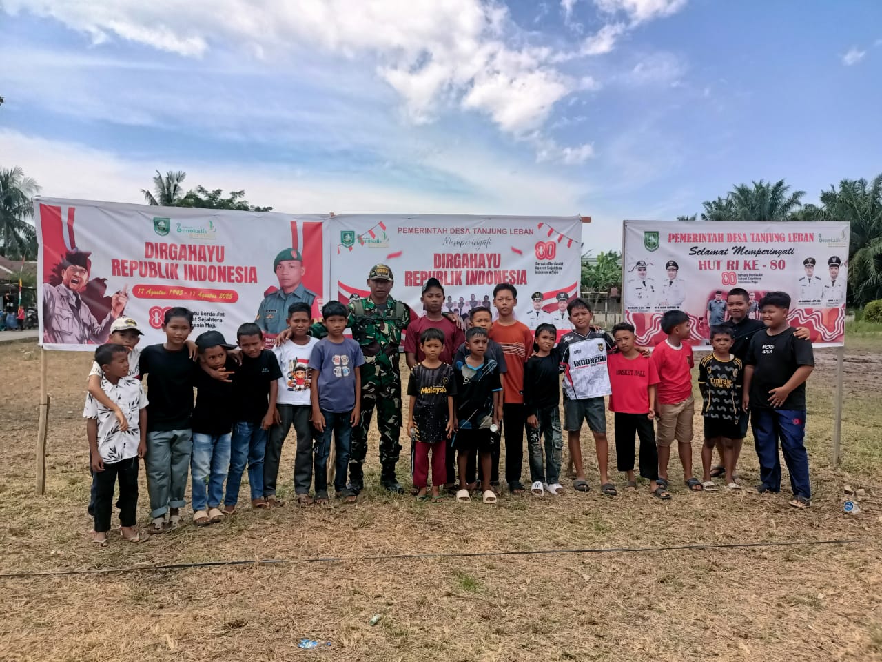 BENGKALIS, BEDELAU.COM--Dalam rangka memeriahkan serta merayakan Hari Ulang Tahun Republik Indonesia (HUT RI) Ke 80 Kodim 0303 Bengkalis Koramil 05/Bukit Batu melalui Babinsa desa Tanjung Leban ikut berpartisipasi didesa binaan serta melakukan pendampingan sekaligus pengamanan kegiatan agar perlombaan dan permainan rakyat berjalan dengan lancar.