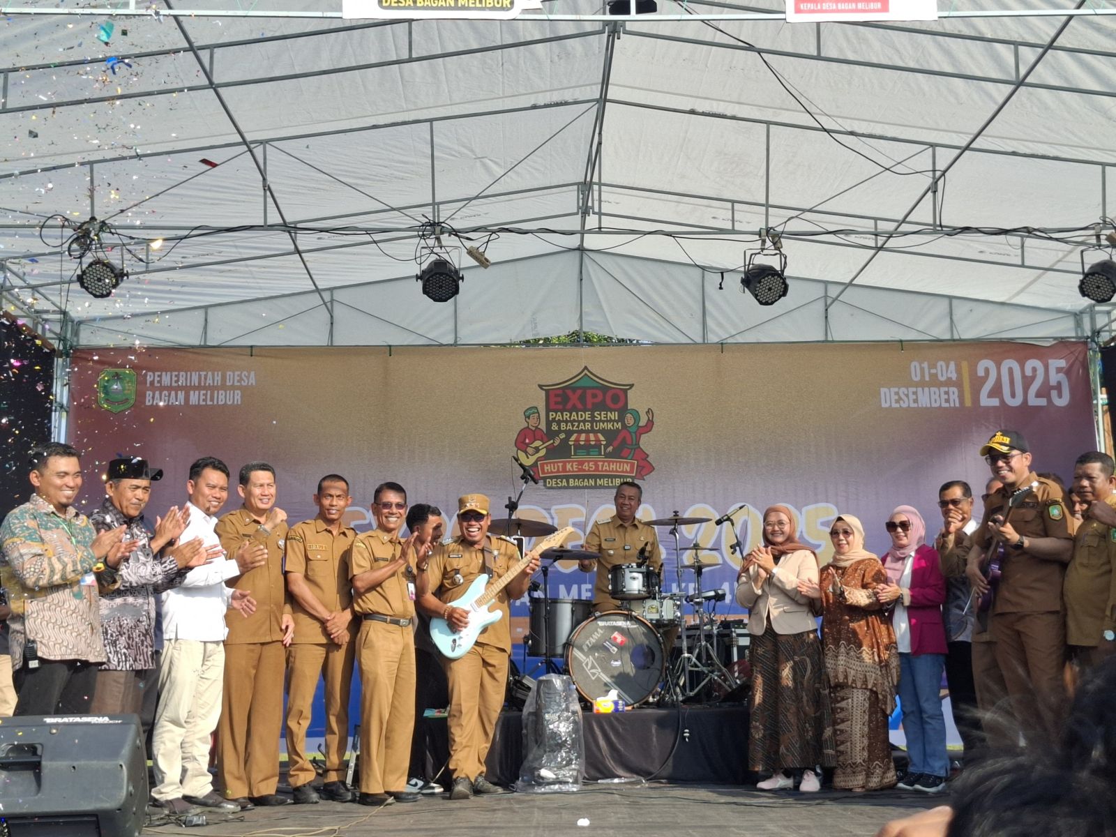 KEPULAUAN MERANTI, BEDELAU.COM--Wakil Bupati Kabupaten Kepulauan Meranti, Muzamil Baharuddin, S.M., MM membuka secara resmi Expo Desa 2025 yang dirangkai kegiatan Bazar UMKM, Parade Seni dalam rangka Hari Ulang Tahun (HUT) atau hari jadi Desa Bagan Melibur Ke-45 yang mengambil tempat di halaman Kantor Desa Bagan Melibur pada Senin (1/12/2025) siang.