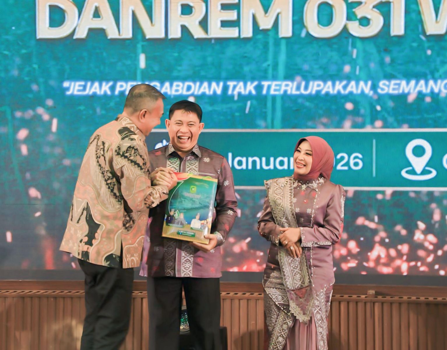 PEKANBARU, BEDELAU.COM--Wakil Bupati Kepulauan Meranti, Muzamil Baharudin SM MM, hadir pada acara pisah sambut Komandan Resor Militer (Danrem) 031/Wira Bima yang digelar di Ballroom Hotel Grand Elite Pekanbaru, Senin (19/1/2025) malam.