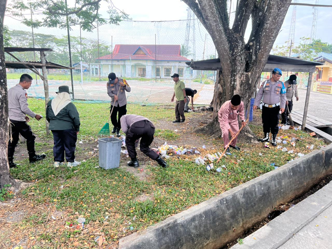 Kapolres Kepulauan Meranti AKBP Aldi Alfa Faroqi melalui Kabag SDM Polres Kepulauan Meranti Kompol Ali Azar ALI S. Sos Mengajak seluruh peserta untuk meningkatkan kepedulian serta kesadaran terhadap pentingnya menjaga kebersihan lingkungan.