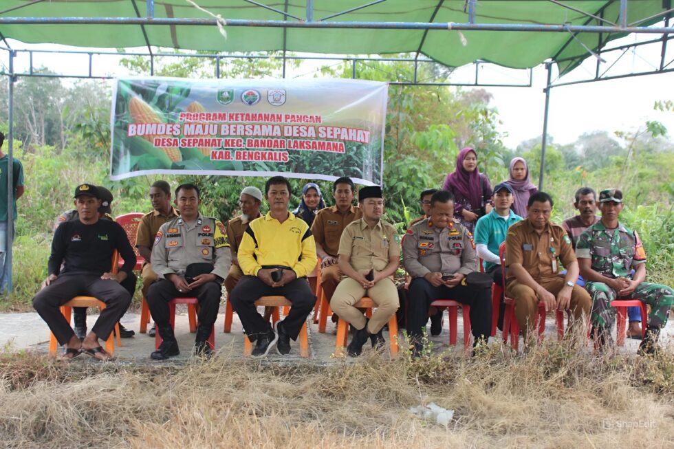 BENGKALIS, BEDELAU.COM--Pemerintah Desa bersama Badan Usaha Milik Desa (BUMDes) Sepahat Maju Bersama melaksanakan kegiatan penanaman jagung sebagai bentuk dukungan terhadap Program Ketahanan Pangan yang di canangkan oleh Pemerintah Pusat. Program ini bertujuan untuk mengurangi ketergantungan impor dan menjamin pangan cukup, aman, bergizi dan terjangkau bagi seluruh masyarakat.