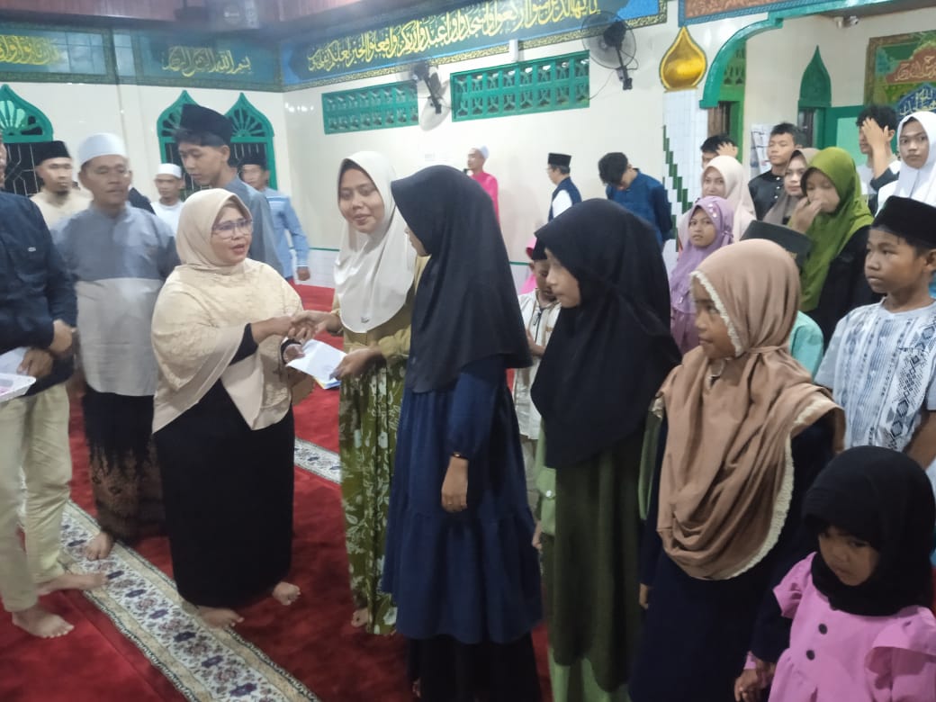 KEPULAUAN MERANTI, BEDELAU.COM--Menjelang hari raya idul fitri 1447 Hijriah, Pengurus Yayasan Permata Bunda Kelurahan Teluk Belitung Kecamatan Merbau, Kabupaten Kepulauan Meranti Riau, menyerahkan santunan anak yatim. Penyerahan dipusatkan di Masjid Al Ihsan Teluk Belitung pada Sabtu (14/3/2026) malam usai sholat tarawih.